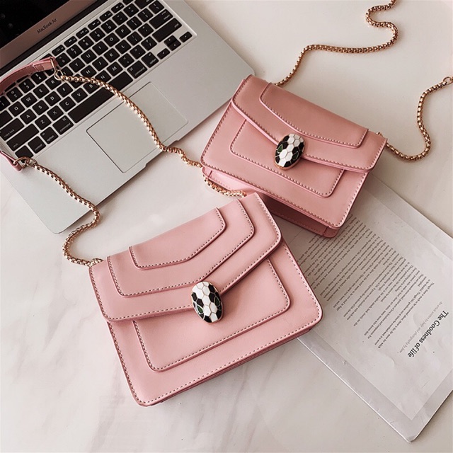 Combo 2 túi đầu rắn viền thêu chỉ nổi (được chọn túi nhỏ và lớn 2 màu khác nhau)