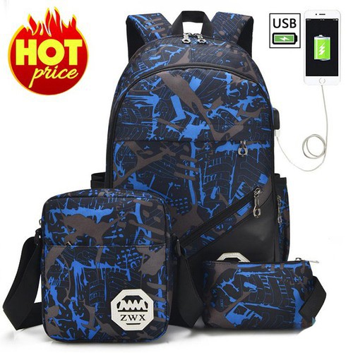 chỉ còn 157,500đ COMBO BL18-2 Túi đeo chéo - Ví cầm tay - Balo đa năng thời trang nam nữ, chống nước, chống bụi, có cáp sạc tiện lợi